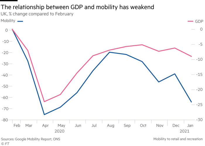 But some of the shine has come off these indicators. The OECD recently noted that the relationship between one of the most closely watched new indicators — Google’s movement data — and economic performance had changed during the final three quarters of 2020.