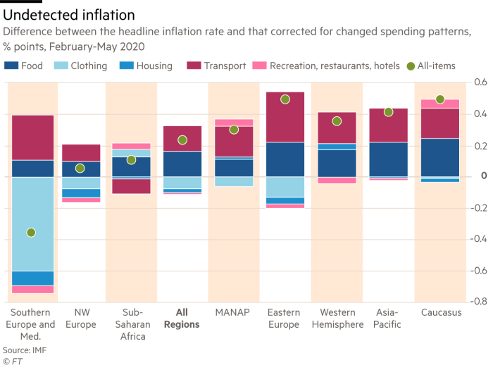 According to Marshall Reinsdorff, a senior economist in the IMF’s statistics department, actual prices of the goods and services people were buying rose faster than measured inflation in “nearly all regions” of the world during the first wave of the pandemic.