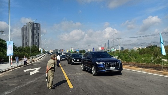 As for the two-way parallel section from Nguyen Thi Dinh Street to Mai Chi Tho Street, cars, motorbikes and 16-seater passenger buses, except trucks and over 16-seat passenger buses, are permited travel in the route.