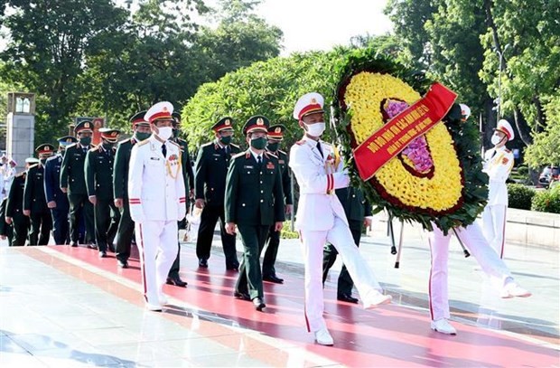 In the morning of the same day, delegations from the Central Military Commission - the Ministry of National Defence, the Central Public Security Party Committee - the Ministry of Public Security, the VFF Central Committee, the Ministry of Labour, Invalids and Social Affairs, the Hanoi Municipal Party Committee, People’s Council, People’s Committee and VFF Committee also paid floral tribute to heroic martyrs at the monument and President Ho Chi Minh at his mausoleum.