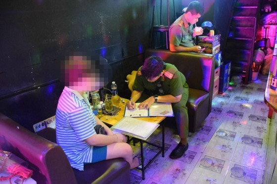 Some photos captured during the police force's checking at business facilities in Bui Vien Street, Pham Ngu Lao Ward: