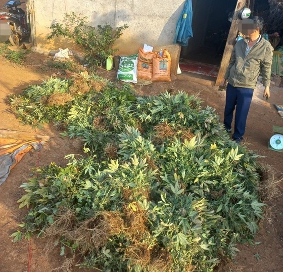 According to the police’s announcement, the local police force coordinated with related units to detect a couple - Tran Van Vu and Le Thi Thom in Bon Bu Dar who have been secretly cultivating cannabis in their field in Dak Hut bon, Quang Truc Commune.