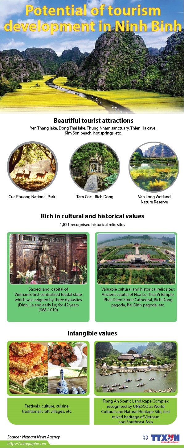 Some 90km south of Hanoi, Ninh Binh province boasts many famous destinations, including Trang An Landscape Complex, a UNESCO-recognised heritage site; Tam Coc, nicknamed “Ha Long Bay on Land”; Cuc Phuong National Park; Van Long Wetlands Nature Reserve; and Phat Diem Stone Cathedral.