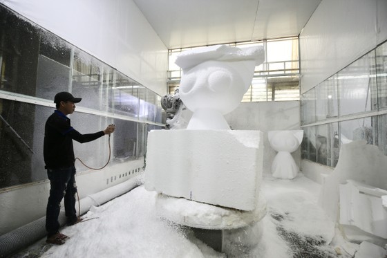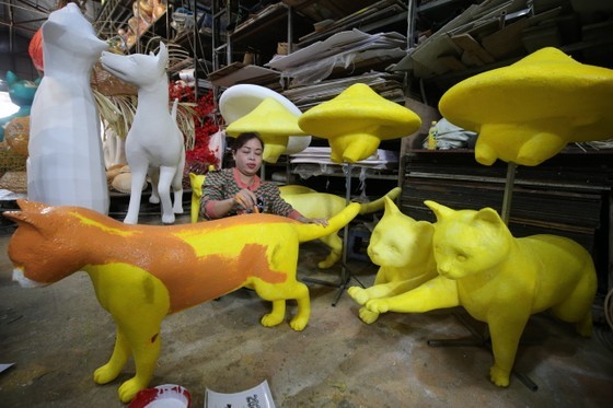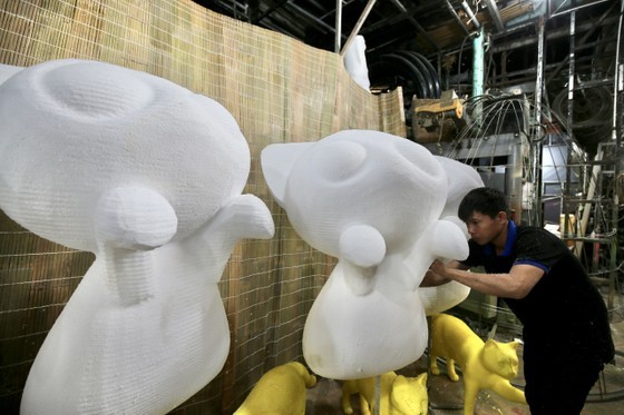 On the morning of December 29, workers of Van Tong Fine Arts Production Company located in District 12’s Thanh Loc Ward are hardly working to finish sacred animals and decorations for the upcoming event.