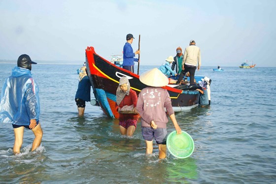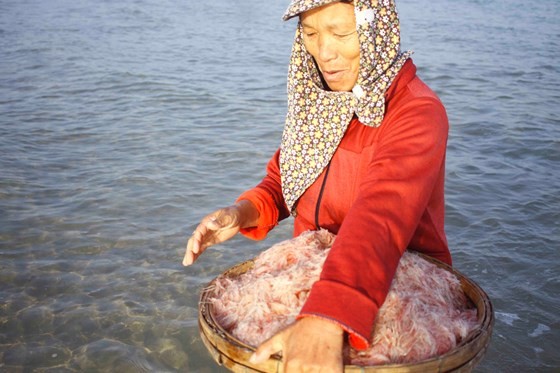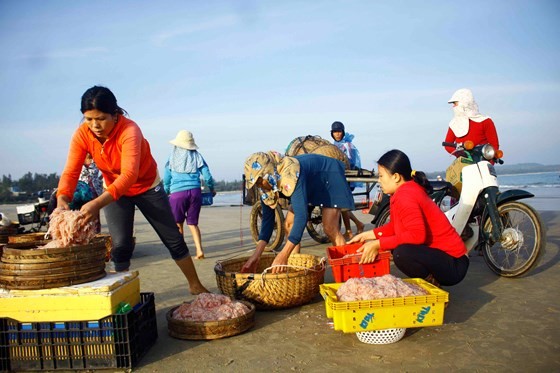 Mr. Vo Duy Hai from the commune said that traders have quickly purchased after fishermen transport tiny shrimp them ashore. A boat with about five fishermen aboard sets out to sea to catch the tiny shrimp a few times a day yielding VND40-50 million.
