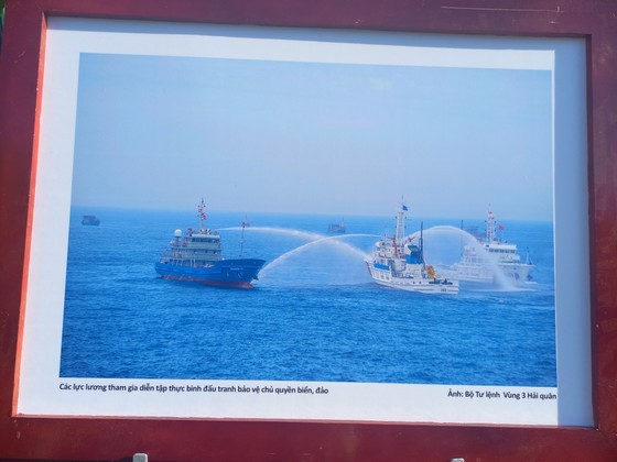 The display themed “ Hoang Sa, Truong Sa in the heart of Quang Ngai’speople” presents to viewers 110 photos, including 60 pictures taken by photographers Nguyen Dang Lam, Dinh Van Hong, and Le Hoang Yen who are members of the Quang Ngai Province’s Arts And Literature Association, 20 photos of the High Command of Navy Region 3 and the remainings of 30 provided by the Party Central Committee’s Commission for Propaganda and Education.