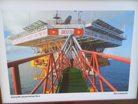 The exhibits reflect the daily life of naval soldiers and residents in Truong Sa, visits by delegations from the mainland to the locals on the island and troops stationed on the DK1 platform, training activities to protect the national sovereignty over seas and islands, prevention and control of floods and storms, search and rescue works.