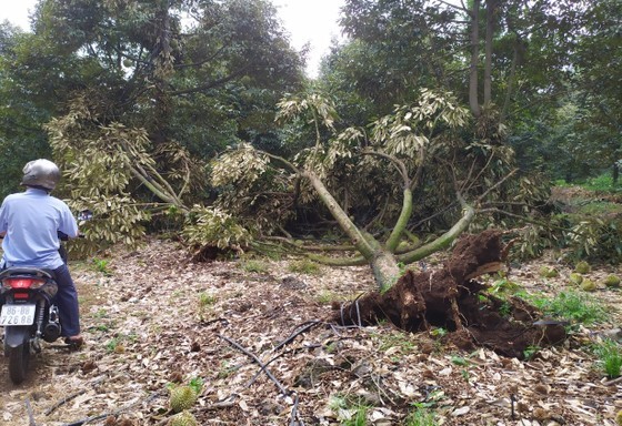 The No. 10 village of Da Kai Commune was badly affected by the strongest tornado wind. More than 300 durian trees No.10 villagers grew for 5-15 years fell down and young fruits of over 500 top-broken other trees dropped. About 1,000 tons were dropped. Farmers have suffered up to VND60 billion in damage from wind, rain and floods.