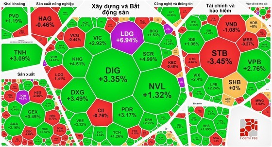 Realty stocks continued to take the throne and were the market leader in the day that banks showed signs of a slowdown. Data on vietstock.vn showed the property sector increased by an average of 2.5 percent, the highest among 14 gaining sectors.