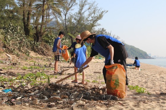 As of this morning, young people along with tourists jointly collected rubbish and cleaned up marine waste along the Quy Hoa seaside.