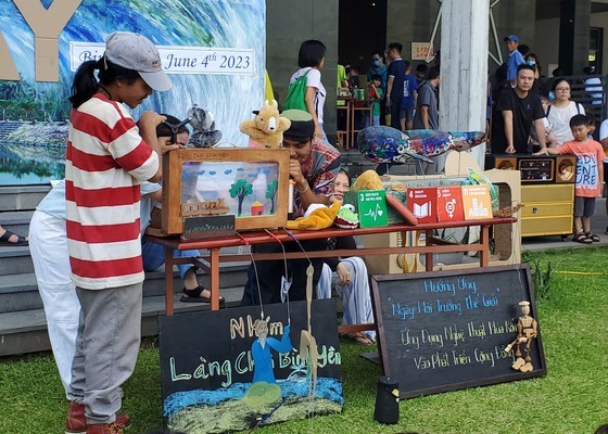 At ISISE Center, 17 units, schools, institutes and environmental organizations showcased dozens of booths of recycled waste with many original, meaningful recycling models attracting numerous young people and tourists.
