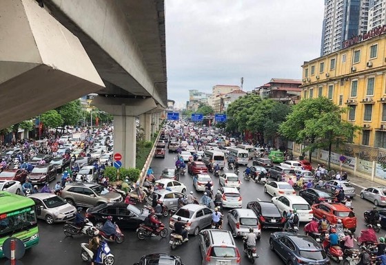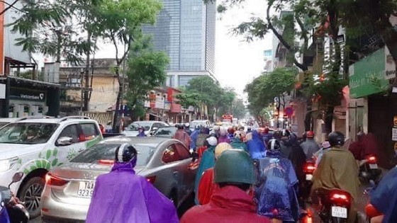 The traffic jam was triggered by a spell of torrential rain occuring in the Northern region including the capital city of Hanoi from last night to this morning.