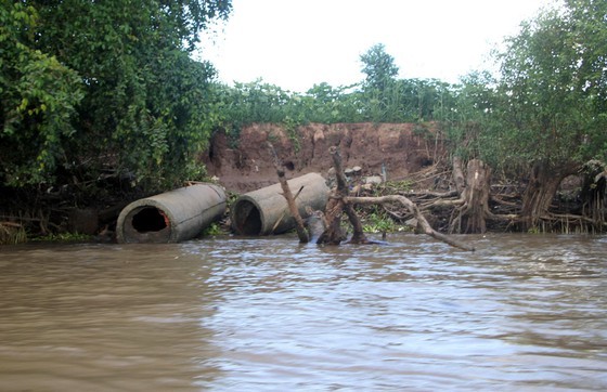 In recent years, the landslides have become worse in Ke Sach District, with an average erosion rate of about two kilometers per year. Landslides have happened deeply into concrete roads and fruit gardens from three to ten meters.