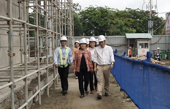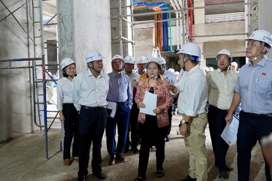 Chairwoman of the HCMC People’s Council Nguyen Thi Le and the inspection team is visiting the social housing project in Thanh My Loi Ward (Photo: SGGP) |