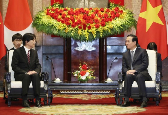 | State President Vo Van Thuong (R) and Crown Prince Akishino (Photo: SGGP) |