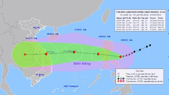 By 4 a.m. on September 28, Noru is forecast to slam the provinces from Thua Thien- Hue to Quang Ngai with powerful winds of 89 to 102 kilometers per hour.