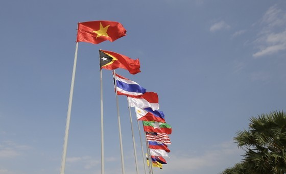 In the solemn atmosphere, as of 8:35 a.m., the national flag of Vietnam was hoisted along with the national anthem performed at the Morodok Techo National Sports Complex in the capital city of Phnom Penh, Cambodia.