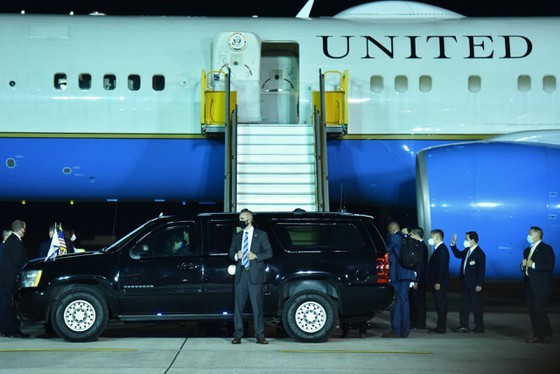 The aircraft carrying the vice president landed at Noi Bai International Airport at about 9.45pm, beginning the US Vice President's visit to Vietam at the invitation of Vietnam's Vice President Vo Thi Anh Xuan.