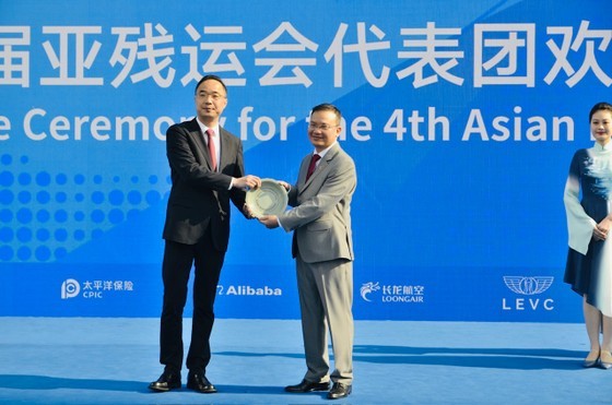 Head of the Vietnamese disabled sports delegation Nguyen Hong Minh together with 30 members attended the flag-raising ceremony and offered gifts to the host country.