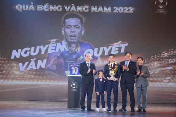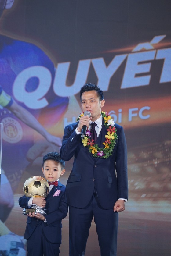 Footballer Nguyen Van Quyet who plays as a striker for the Hanoi FC and Vietnam national football team won the Golden Ball in the category of male football at the awarding ceremony organized in HCMC on February 25.
