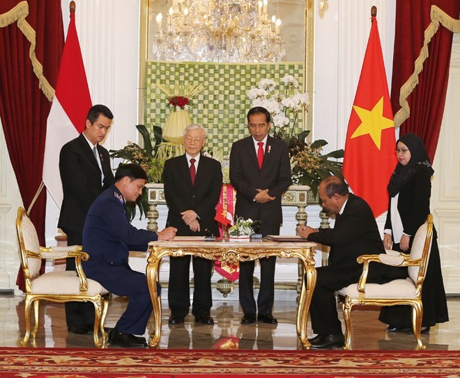 Party General Secretary Trong underlined that Vietnam consistently wants to bolster the strategic partnership with Indonesia in a substantive manner. Good implementation of the reached common perceptions and cooperation orientations and measures will strongly develop bilateral relations, thus practically benefiting the two peoples, helping to enhance solidarity among the member countries of the ASEAN Community, and actively contributing to peace, stability, cooperation and development in the region and the world.