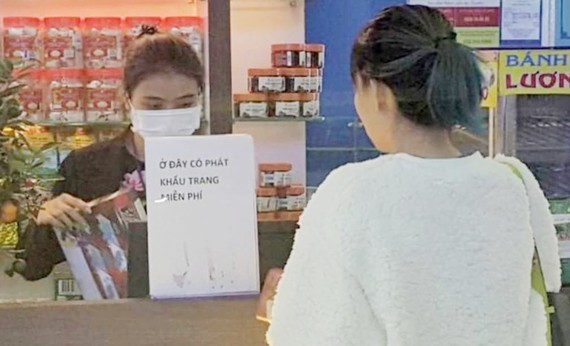 Paasengers can take a free face mask from the booth in Noi Bai Airport (Photo: SGGP)