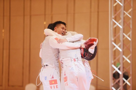 In order to qualify for the final match as well as secure the historic gold medal, Vietnamese fencers including Cao Minh Duyet, Nguyen Minh Quang, Pham Quoc Tai and Nguyen Van Hai made their efforts to have a dramatic 45-42 victory over Malaysian team in the semi-final event and 45-37 victory over the defending champion of Singapore in the final match.