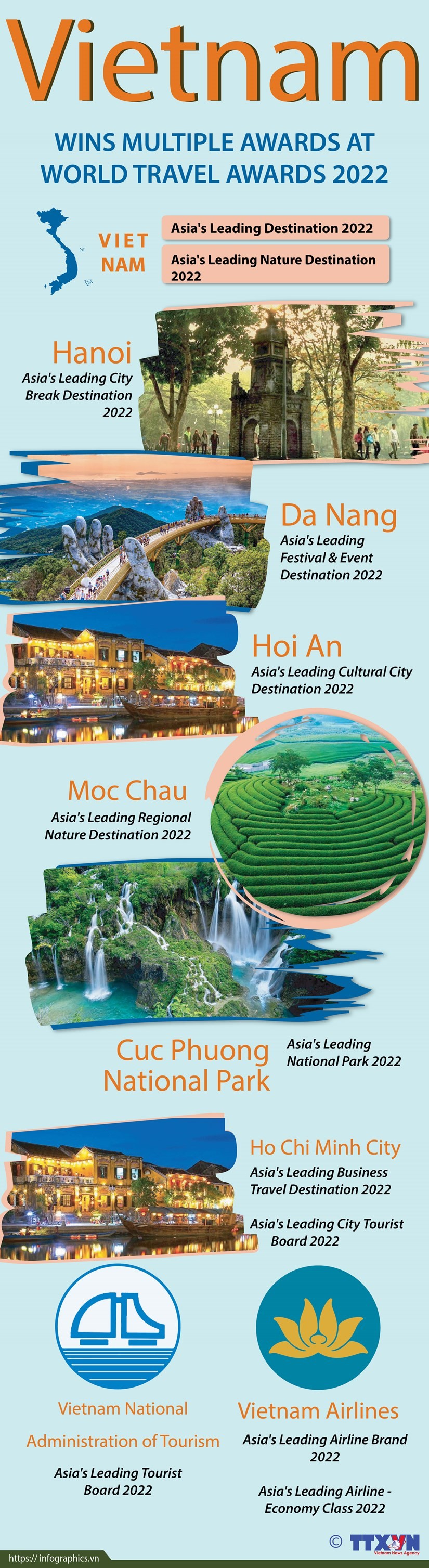 Vietnamese airlines and destinations were named among the winners at the award ceremony of the World Travel Awards 2022 - Region: Asia & Oceania.
