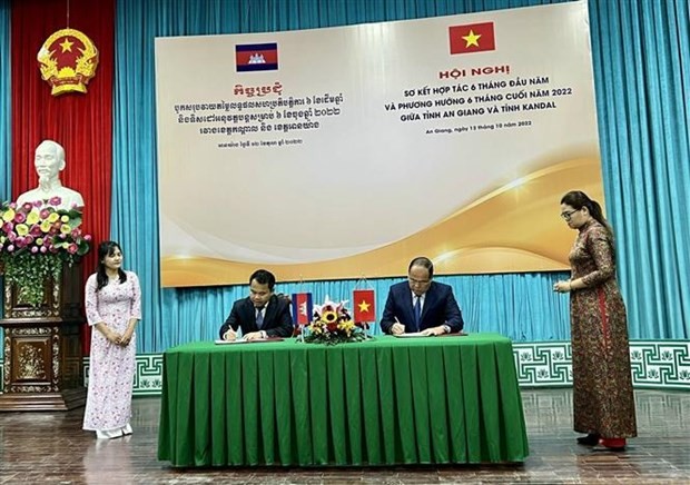 Vietnam’s Mekong Delta province of An Giang and Cambodia’s Kandal province sign a memorandum of understanding on cooperation orientations until the end of 2022. (Photo: VNA)