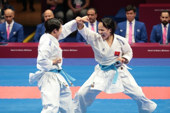 On the evening of October 6, Vietnamese athletes continued to secure another gold medal. This triumph was achieved by the Vietnamese women's karate team in the team kata event.
