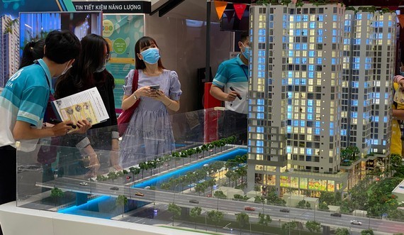Clients looking into a future apartment complex in Binh Tan District, Ho Chi Minh City. (Photo: SGGP)