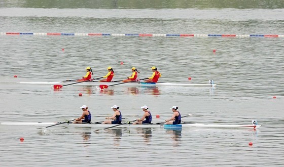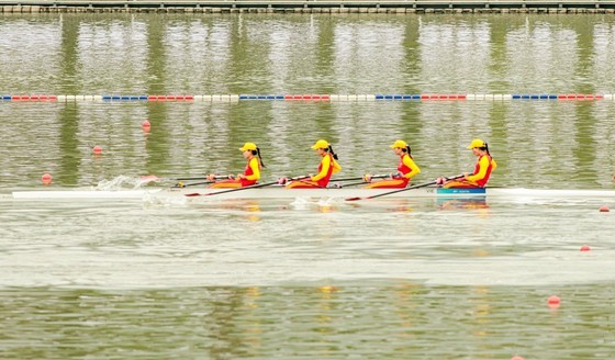 On September 24, the Vietnamese rowing team, including Pham Thi Hue, Dinh Thi Hao, Ha Thi Vui, and Du Thi Bong, competed in the A final alongside teams from Thailand, India, Hong Kong (China), Japan, and China.