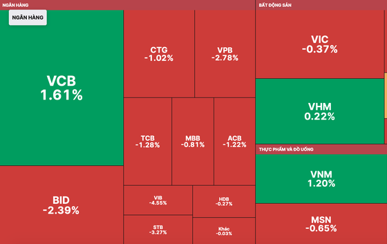 Vietnam's stock market was volatile in the morning trading session on February 10 due to investor caution. In the afternoon session, selling pressure increased, leading to widespread losses. Banking, securities, real estate, and public investment stocks all declined, pulling the VN-Index down by nearly 9 points.