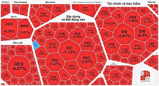 Most key stock groups experienced a losing trend. Banking stocks were flooded in red color. Among them, EIB plunged 6.5 percent; TCB, CTG, BID, and VIB all reduced by over 2 percent; VCB declined by 1.12 percent, and VPB retreated by 1.77 percent.