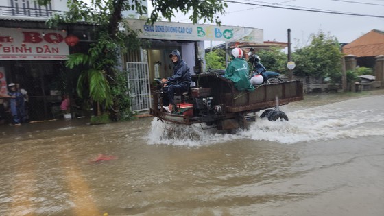 The 600-meter-long National Highway 1 at Km829+00 - Km829+600 through An Dong Ward of Hue City was under 0.3 meters of water, thus, currently only trucks and high chassis vehicles are allowed to travel.