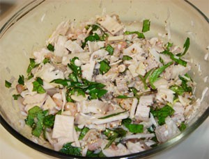 Shrimps for the dish should be firm and of finger size. Boil them and remove the shell.