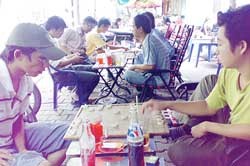 In Mieu Noi, where “hidden dragons” and “crouching tigers” are said to abound, small cafeterias host expert chess players, dubbed “tiger” or “dragon” like Thai or Lam, and aficionados, called “deer” drop in to wager small money for fun, to gain experience, to make friends or just while away the time.
