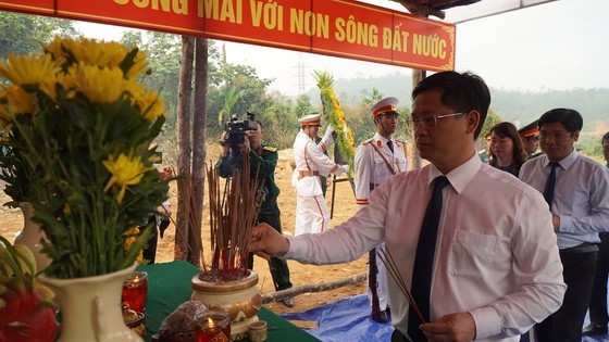 Delegates commemorate 13 officials and soldiers who were killed by a landslide during their rescue operation at the Rao Trang 3 hydropower plant in the central province of Thua Thien – Hue (Photo: SGGP) |